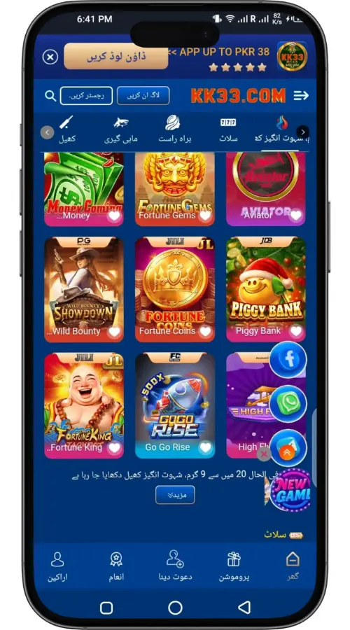 KK33 is an online app that provides a variety of mini-games, prediction games, card-style games, and reward-based features. It allows users to play simple and quick games on their mobile phones without needing high-end devices. The app focuses on speed, entertainment, and easy access for Pakistani users.