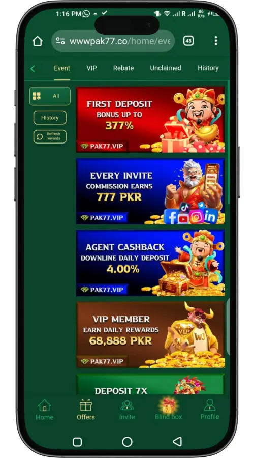 Earn Through Bonuses & Promotions of the PAK77 Game Online